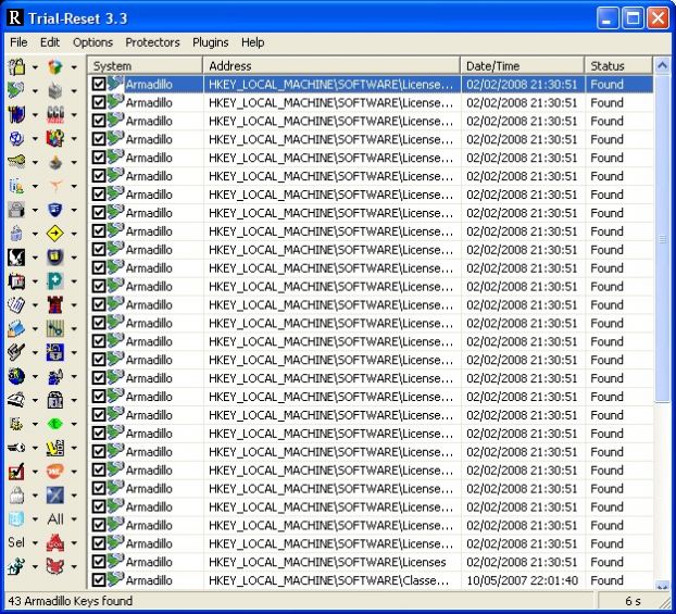 | При заканчивании триального периода действия, программа перестает работать, вот тут и приходит на помощь Trial Reset. Имеются плагины для продления срока действия Empty Key, SlySoft, Alcohol 1.x, License Protector 2.x, Enigma Protector 1.4x, ActiveMark 6.x Размер: 1Мб Интерфейс: ENG | |