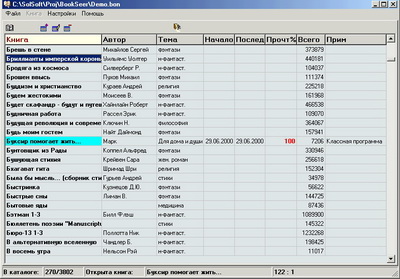 ![]() BookSeer - каталог-читалка электронных книг, коллектор файловых ссылок с описаниями любимых файлов, которые тут же можно запустить или прочитать (даже в архивах), база данных общего применения (почтовые и Web адреса, коллекции, записи и т.п.), русско-английский интерфейс, не требует инсталляции, Win95 - WinXP, ничего дополнительного, кроме самого себя (и Windows), не требует! Что может BookSeer? 1. Программа создаёт базу данных в одном файле (*.bon) и работает с этой базой быстро, легко, непринуждённо - мощные фильтры по разным критериям, мгновенный поиск и сортировка по всем полям, импорт-экспорт и т.д. 2. По ссылкам, записанным в базе данных, может запущена любая программа, но главное - встроенными средствами может быть прочитан любой текстовый файл (то есть, TXT, RTF, HTML, DOC и т.п.), да ещё с автодекодированием DOS->WIN, KOI->WIN... 3. Более того, читать или запускать файл можно прямо из архивов (Zip, Rar, Ha), которые программа понимает без внешних распаковщиков! То есть, записи в базе могут ссылаться на любой внутриархивный файл. 4. По ссылкам, записанным в базе, программа может выполнять массовые операции непосредственно с файлами на диске: переименование, копирование, перемещение, удаление. 5. Базу данных можно использовать и самостоятельно - как структурированное хранилище записей, не ссылаясь на файлы, используя и переименовывая поля базы по своему усмотрению. 6. Самих баз данных может быть сколь угодно - каждая для своих целей, со своими настройками. Язык: Английский, русский Размер: 1.1 MB Download | Скачать BookSeer 3.3.7: | |