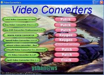 Xilisoft Video Converter 3.1.50.0104b #1 Video Converter 4.1.47 Opell Video Converter Pro 2.1.5 Total Video Converter 3.11 SKAYA VIDEO CONVERTER Any DVD Converter Professional 3.5.7 Any Video Converter Pro 2.5.6 Speed.Video.Converter.3.0.55 winavi video converter 8.xx Размер: 82,75мб + Зеркало letitbit.net